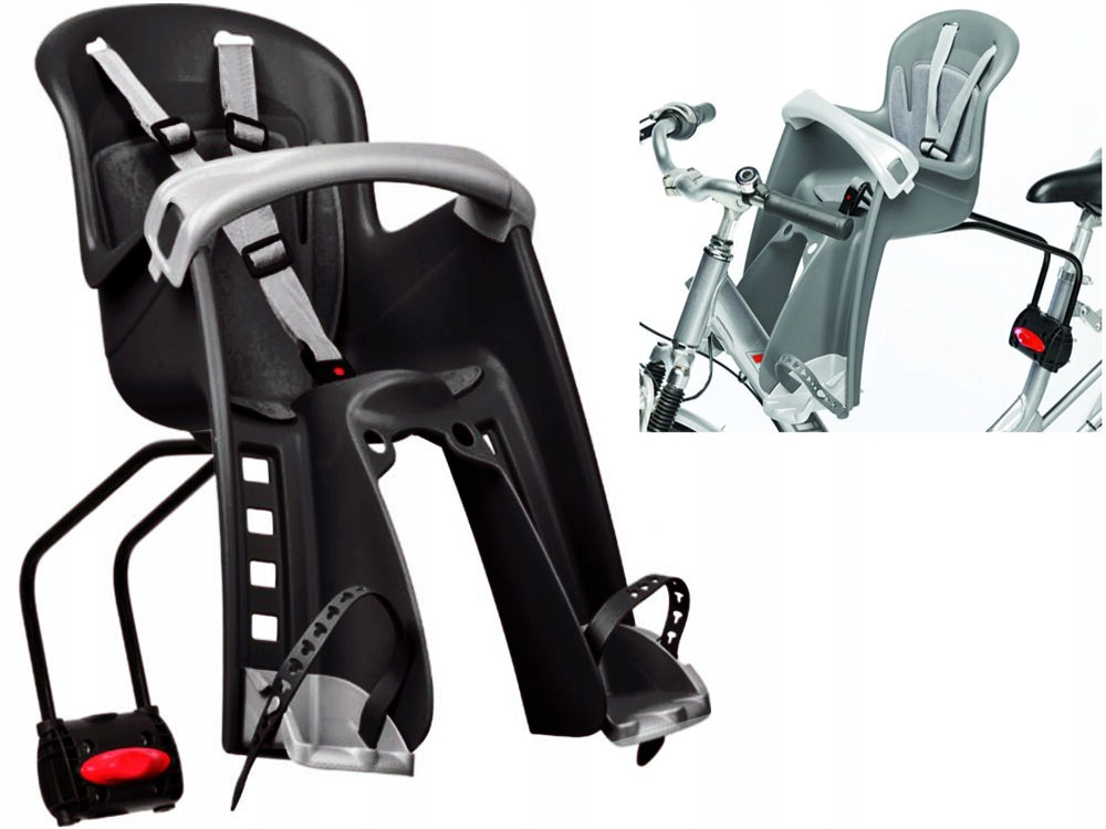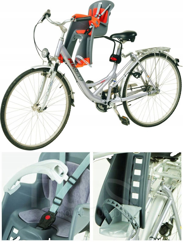 Super wygodny fotelik z ruchomą poprzeczką, montowany do rury podsiodłowej ramy z zachowaniem wszystkich systemów bezpieczeństwa.