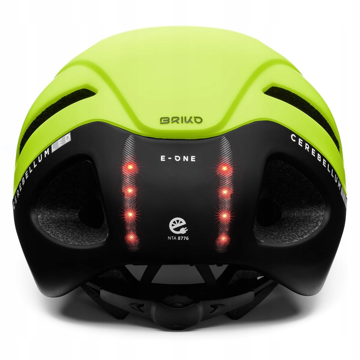 E-One to kask z linii CEREBELLUM, produkty Briko w ciągłym poszukiwaniu technologicznej ewolucji, który integruje system przednich i tylnych diod LED wewnątrz skorupy, dzięki czemu rowerzysta jest widoczny i rozpoznawalny w każdej sytuacji.