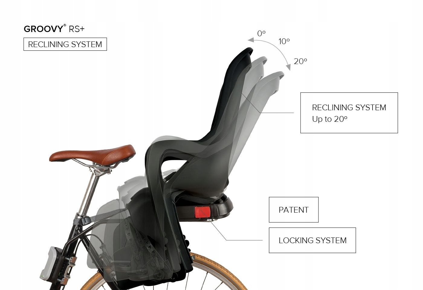 Podstawa RS (Reclining System) umożliwiająca odchylanie fotelika mocowanego na stelażu do rury podsiodłowej.