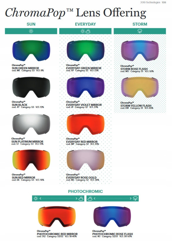 Wszystkie soczewki stosowane w goglach Smith zapewniają 100% ochronę przed szkodliwym promieniowaniem UVA, UVB i UVC.