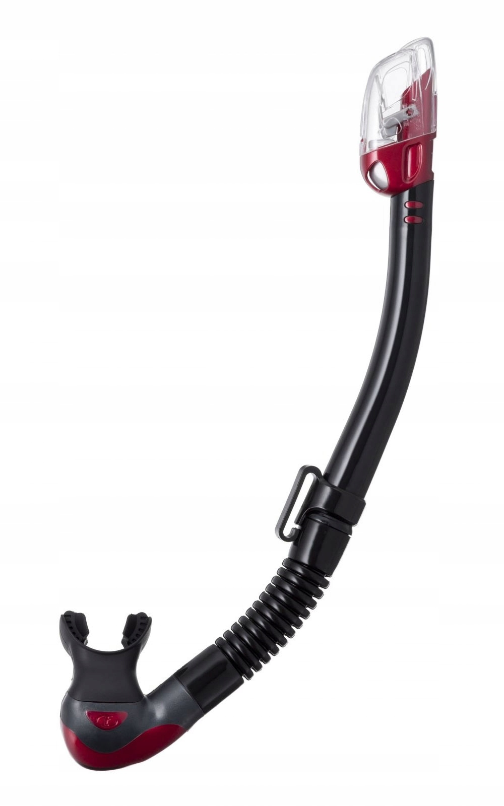 Fajka TUSA HYPERDRY ELITE II SP-0101 z hypoalergicznym silikonowym ustnikiem, który zapewnia komfort użytkowania i górnym zaworem HYPERDRY ELITE zabezpieczającym przed zalewaniem fajki wodą podczas całkowitego zanurzenia.