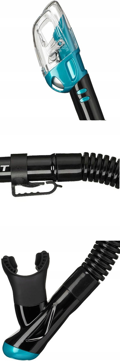 Fajka TUSA HYPERDRY USP-250 z hypoalergicznym silikonowym ustnikiem, który zapewnia komfort użytkowania i górnym suchym zaworem zabezpieczającym przed zalewaniem fajki wodą przez fale oraz przy zanurzeniu pod wodę - HYPERDRY ELITE TOP.