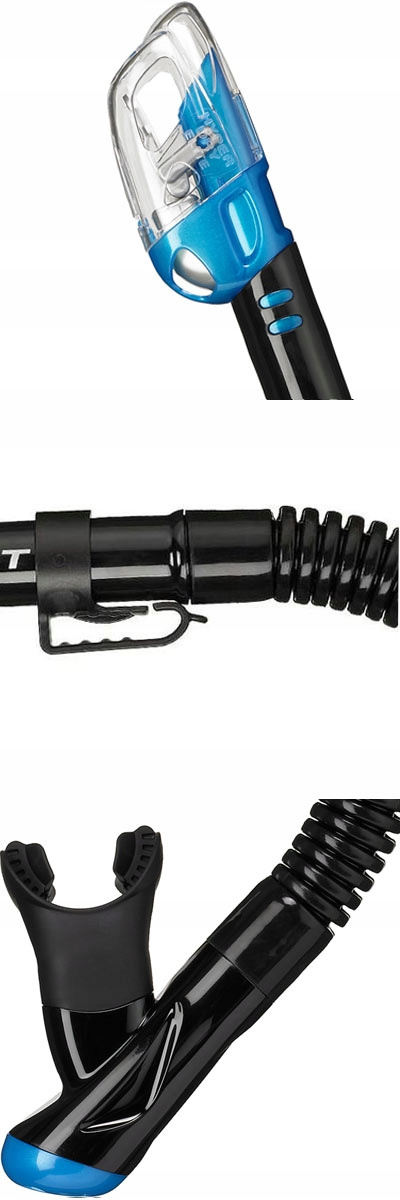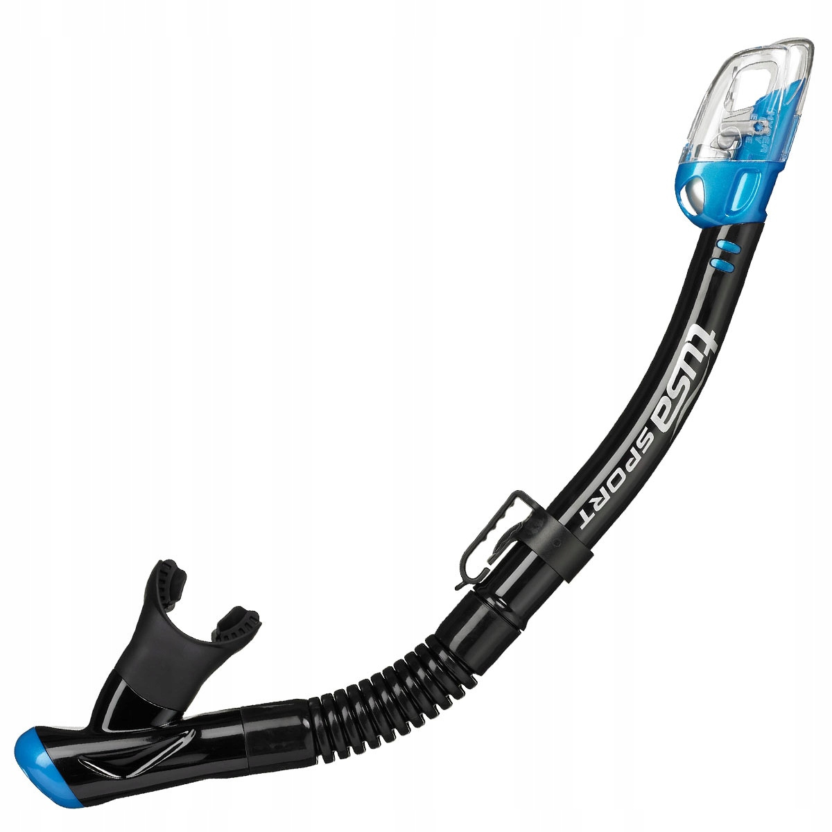 Fajka TUSA HYPERDRY USP-250 z hypoalergicznym silikonowym ustnikiem, który zapewnia komfort użytkowania i górnym suchym zaworem zabezpieczającym przed zalewaniem fajki wodą przez fale oraz przy zanurzeniu pod wodę - HYPERDRY ELITE TOP.
