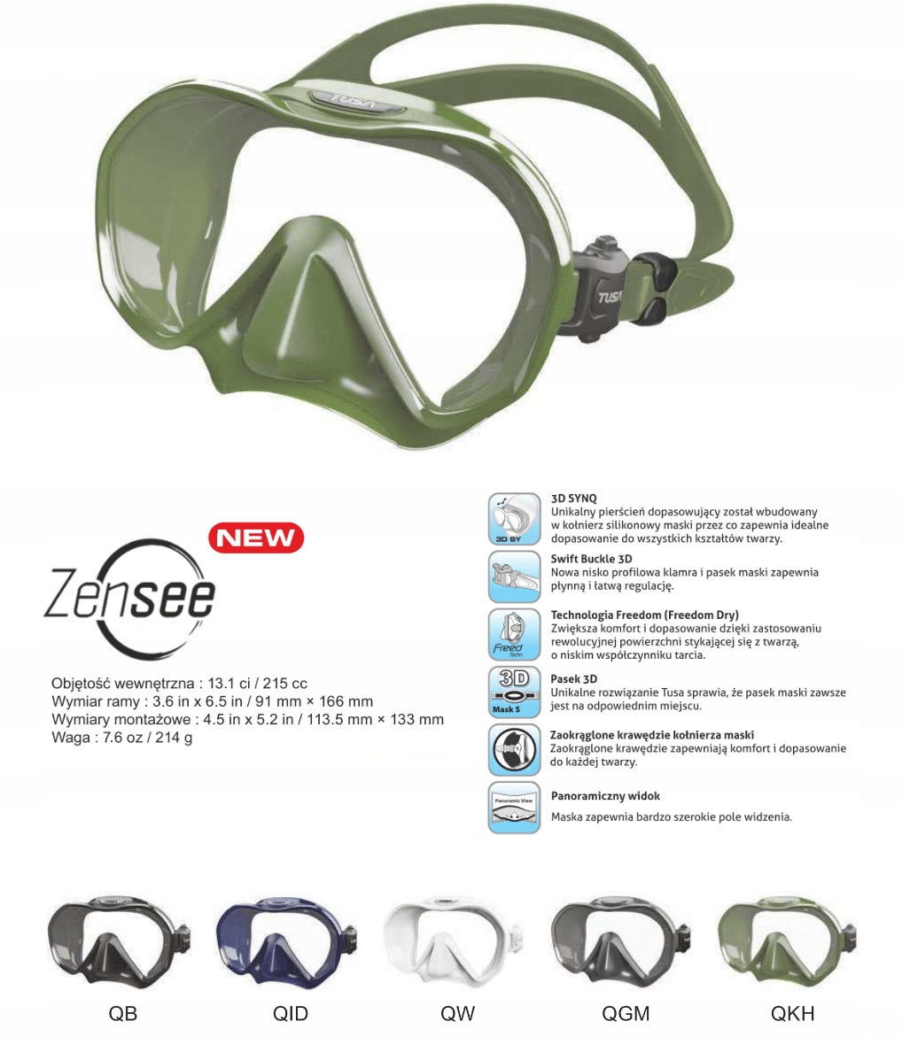Maska TUSA M1010 ZENSEE to doskonała maska wykonana z hypoalergicznego 100% silikonu, co gwarantuje idealne przyleganie i najwyższy komfort.