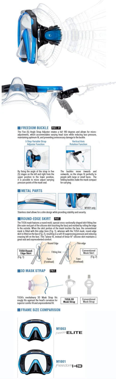 Maska TUSA M1001 Freedom HD to doskonała maska wykonana z hypoalergicznego 100% silikonu, co gwarantuje idealne przyleganie i najwyższy komfort.