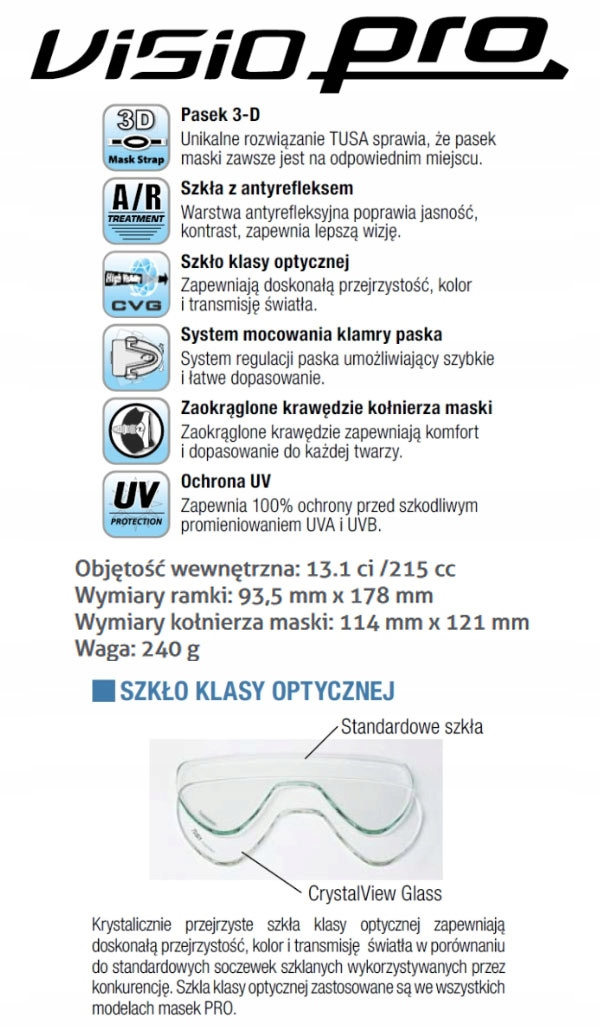 W VISIO PRO zastosowano szyby antyrefleksyjne A/R z technologią krystalicznej przejrzystości klasy optycznej CrystalView Optical Glass i filtrami w 100% chroniącymi przed szkodliwym działaniem promieni słonecznych UVA i UVB