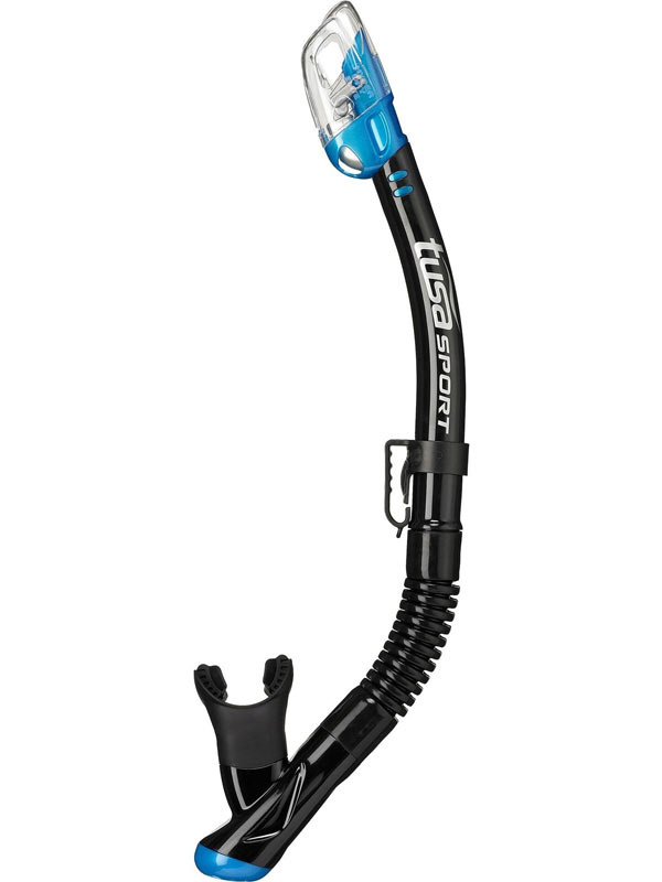 Fajka TUSA HYPERDRY ELITE SP-250 z hypoalergicznym silikonowym ustnikiem, który zapewnia komfort użytkowania i górnym zaworem HYPERDRY ELITE zabezpieczającym przed zalewaniem fajki wodą podczas całkowitego zanurzenia.